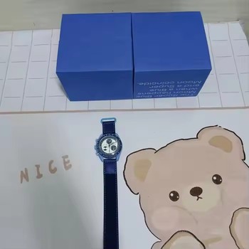 La caja del reloj contiene un juego completo de archivos para la gama completa de Omega Swatch Sun Mars de color de tela Jam